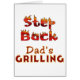 Grappig BBQ-artikelen, t-shirts, mokken, sleutelhangers, kaarten en nog veel meer met vlamstijltekst die je waarschuwt om terug te gaan, omdat vader aan het grillen is!