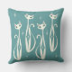 Mijn oorspronkelijke vectorillustratie van halverwege de eeuw inspireerde katten, met zetbursten en diamanten, in ivoor, met hints roze, aqua en donker blauwgroen op een getextureerde blauwe achtergrond.
