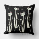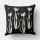 Mijn oorspronkelijke vectorillustratie van halverwege de eeuw inspireerde katten, met sterrenbursten en diamanten, in ivoor, met hints roze, aqua en donker blauwgroen op een zwarte achtergrond.