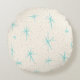 Ce Space Age Turquoise Starbursts Round Coussin motif présente des étoiles bleues sur un arrière - plan crémeux avec des taches dorées. Inspiré d'un classique motif de plats modernes du milieu du siècle, ce design dégage une atmosphère vintage authentique. La bonté kitschy rétro vous fera sentir comme si vous étiez tombé sur un trésor du marché aux puces. Ce motif sera également à la maison dans un appartement de New York City penthouse ou une maison atomique Palm Springs. Laissez ce motif vintage minimaliste vous inspirer !