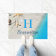 Een lichte zandstrandscène aan de rand van het water met een half begraven zeester en schelpvormig ontwerp met uw gepersonaliseerde monogram letter en volledige familienaam. Geweldig voor een strandhuis!