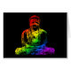 Graphique stylisé d'une statue de bouddha aux couleurs arc-en-ciel.
