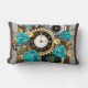 Steampunk Clock- en Turquoise-Rozen op gestreept Kussen