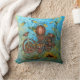 Deze stijlvolle kussen hebben een steampunkthema in aqua en koper en bevatten een verscheidenheid aan elementen, waaronder luchtballonnen, wijnstokken en bloemen, en natuurlijk ook tandwielen en wielen.