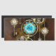 Turkooizen lenzen met een antieke horloge met messing tandwielen en gouden sleutels op een roestige, bruine achtergrond. Steampunk stijl.