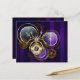 Steampunkspin, gemaakt van goud en staal, met antiek horloges met gouden tandwielen op een paarse, getextureerde achtergrond, met lenzen en messing. Steampunk.