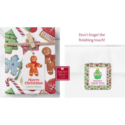 Sticker Carré Cupcakes de Noël Aquarelle