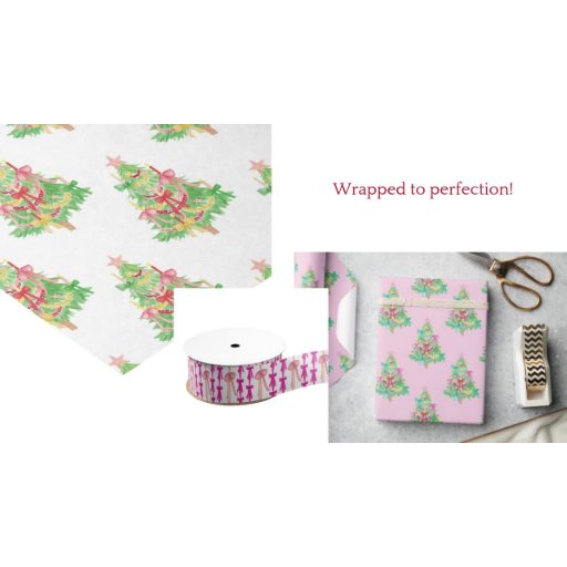 Watercolor Coquette Bows Christmas TreesConçu par Ann