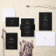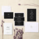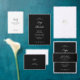 A clean minimalist wedding invitation design featuring elegant black style text on a white background. The layout is simple, modern, and focused on refined typography, making it suitable for contemporary weddings with a classic luxury aesthetic.