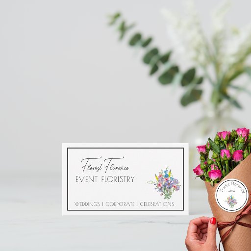 De beaux autocollants fleuris simplistes à ajouter à vos cadeaux ou à votre emballage de bouquet. Bordure noire et police moderne qui peut être modifiée pour inclure votre libellé.