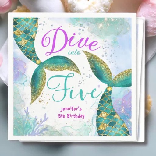 Dive into Five! Purple Teal Mermaid 5h Birthday Conçu par H-Art Studio Design