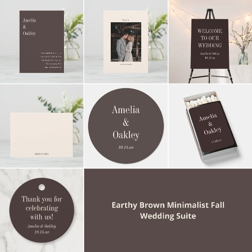 Earthy Brown Minimalist Fall Wedding SuiteConçu par Opal Ellery