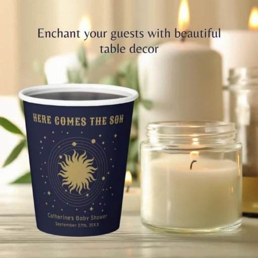 Voici notre collection de Baby showers célestes "Here Comes the Son", un mélange paradisiaque d'astronomie vintage et d'élégance moderne, conçu pour célébrer l'arrivée de votre petit garçon dans un style stellaire. Avec un thème unique qui combine harmonieusement le charme fantaisiste de "Twinkle, Little Star" avec l'allure majestueuse du système solaire, cette collection est parfaite pour ceux qui souhaitent s'aventurer au-delà des motifs de baby shower traditionnels. Notre collection méticuleusement décorée présente un or de couleur exquis, évoquant la mystérieuse beauté du ciel nocturne, ornée d'étoiles scintillantes, de planètes sereines et de la douce lueur du soleil. Chaque détail de la collection "Here Comes the Son" est conçu pour transporter votre baby shower dans un royaume d'émerveillement céleste. Que la magie de l'univers bénisse votre petite étoile avec une douche qui est aussi illimitée que votre amour pour lui, créant des souvenirs qui scintilleront dans vos coeurs pour toujours.