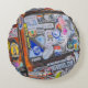 Het abstracte kunstwerk op dit ronde kussen is een originele foto van ZoeSPEAK van een oude pick-up truck die een rustplaats vond tussen de bomen in een rustige straat in Key West, Florida. Daar werd het veranderd in een kunstwerk, overdekt met kleurrijke stickers van alle soorten, felblauwe tinten, rode en gele tinten met veel tekst. Er is een piratenschedel, zeilboten en het nummer 13. Er is zelfs een CONCHTASTIC sticker van de boei op het zuidelijkste punt van het vasteland van de VS.