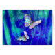 Twee kleurrijke vlinders die uit een surrealistische atmosfeer opstijgen, lijken op een whirlpool en schachten van omringend licht. De achtergrond is in tinten blauw, paars, en blauw-groen.
