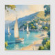 Franse en Europese reisadvertenties - strand, dorp, mensen, bomen, blauw zee en sky-illustratie