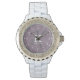 Een prachtig vrouwelijk horlogeontwerp met een stijlvolle weergave van jouw naam en monogram met klassieke serifs en een kalligrafiescriptlettertype in een evenwichtige en symmetrische look. De drie elementen vermengen zich met een verfijnde harmonie en creëer je eigen persoonlijke logo. Hier afgebeeld met een populaire stoffige paarse achtergrond met monogramelementen in wit en grijs.