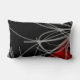 Elegant organisch abstract ontwerp met een moderne, stijlvolle zwarte achtergrond met witte en grijze linten met rode accenten. Ontworpen met vectorgrafiek, kunt u aanpassen door de achtergrond en lijn/grenskleuren te veranderen, of de "contact deze ontwerper"knoop voor hulp te gebruiken. Om uw gepersonaliseerde kussen te creëer, selecteer "pas"aan en navigeer aan de laagsectie om de afbeeldingen te uitzichten en de achtergrondkleur of de grenskleur te veranderen om uw huisdecor aan te passen. Een elegante toevoeging aan je decor, of een doordacht modern cadeau.