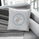 Dit strand thema kussen voor grijze banken beschikt over een grijze tribal schildpad in het midden van een stoffige blauwe achtergrond.