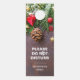 Een kleerhanger met een bijtende foto van een bruine houten tafel met pineconen, dennennaalden, sneeuw en kerstversieringen. Festief en mooi.