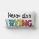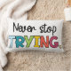 Ontdek het prachtige en inspirerende "Never Stop Try" lumbale kussen. Voeg een vleugje motivatie en comfort toe aan uw woonruimte met dit unieke en stijlvolle accessoire.