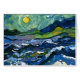 Wilde oceaangolven met groene lucht en bergen.