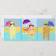 Meisjes in roze polka dot bikini's nippen van een drink bij strandvakantie