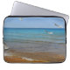 Levendige foto van meeuwen die laag over de kustlijn van een gouden zandstrand vliegen.
