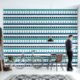 Verse en zomerse strand en zee gestreepte behang met ankers en zeeschelpen in blauw, wit en aqua blauwgroen groen, ideaal voor een strandhuis, badkamer of nautische themakamer van het kind.