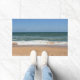 Deze deurmat is voorzien van een foto van strandgolven die neerstorten op de kust.