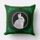 A strange white bunny to keep you company. The bunny faces to the left. There is a separate listing for bunny facing to the right. The main color in the front of this throw pillow is green with turquoise blue flowers with blue centers. The back of the pillow is diamond checkered in blue, turquoise, green, and black. **** Please note that due to differences in computer monitor and device settings, the colors on the actual physical product may not be an exact match to what you see on your screen.**** Thank you for looking! Peace, love, and light <3****