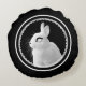 Strange white bunny round pillow in black and white. **** Please note that due to differences in computer monitor and device settings, the colors on the actual physical product may not be an exact match to what you see on your screen.**** Thank you for looking! Peace, love, and light <3****
