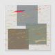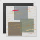 Moderne geometrische vormgeving van drie vierkantjes met kleurrijke lineaire verfstromen.