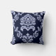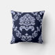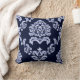 Sierkussen van het Patroon van het damast het Marineblauwe en Witte. U kunt het met Uw Eigen Afbeelding aanpassen.