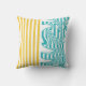 Strepen en wervelingen in Turquoise en Geel Kussen