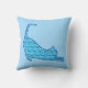 Gooi het kussen in een silhouet van een stretching cat in een gestileerd blauw lotuspatroon