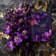 Rich jewel-tone purples and delicate botanical details frame your wedding information beautifully, creating a dramatic yet timeless aesthetic perfect for formal, black-tie, evening, or destination weddings.