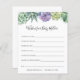 Laat je douchegasten deze schattige wensen voor baby op je baby shower invullen. Met waterverf groene en paarse succulenten. Pas de naam en de douchedatum van mama aan.