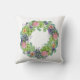 Steek uw meubels op met deze gooiende kussen geadorneerd met een lelijke kreet gemaakt van succulenten, roze, blauwe en perzikbloemen en aanrakingen van paarse loof.