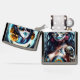 Stap in de levendige wereld van Día de los Muertos met dit prachtige portret van de make-up van de suikerschedel. Dit afbeelding is versierd met rozen en ingewikkelde design en legt de essentie van het feest vast, waarbij het een eerbetoon is aan de traditie.