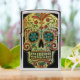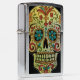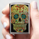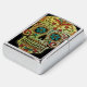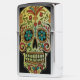 Sugar Skull Art, Day of the Dead skull afbeelding gecreëerd door het combineren van abstracte vormen en patronen in verschillende kleuren. Het afbeelding roept herinneringen op aan de bloem-kracht- of hippiecultuur of rockster gothic imagery.