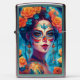 Een boeiende vrouw in suikerschedel make-up, het creëren van een mix van mysterie en florale elegantie, waar de schedel visage voegt een laag van intriges aan de bloeiende rozen. Het is alsof de persoon zowel een deel van de tuin als een geheim erin is, hun essentie verweven met de hemelse gloed die de scène baadt.