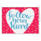 La citation de lettrage de brosse suivent votre coeur à l'arrière - plan rose d'aquarelle. Design de carte rose de vecteur avec la typographie moderne. | Bigstock® - tous droits réservés.