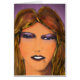 Begonnen met een potloodschets van een aantrekkelijke vrouw gemaakt uit mijn verbeelding. De kleur en het in de schaduw stellen werden digitaal toegevoegd. Haar huid staat op het punt oranje te zijn, en haar haar is een mengsel van verschillende tinten bruin, geel, zelfs een kleine aanraking van roze. Ze heeft blauwe ogen en draagt een paarse of violette oogschaduw en heeft donkere rode lippen die bijna zwart lijken. De achtergrond is dezelfde soort paars als haar oogmake-up. Dit ontwerp ging van een eenvoudige monochrome potloodschets naar een levendig kleurenstuk digitale kunst.