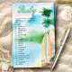 Baby Word Scramble Game sheet, met bewerkbare spelinstructies - leuk woordpuzzelspel om op uw baby shower te spelen. Game card veren waterverf ontwerp met een dromerige strandscène met surfplanken en retro typografie. Genderneutraal thema voor uw luau, surfen of strand thema baby shower voor baby meisje of baby jongen.