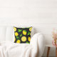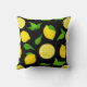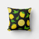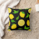Een prachtig geworpen kussen met een citruspatroon met handbeschilderde citroenen met groene bladeren op een zwarte achtergrond. Het zal je huis onmiddellijk oplichten. Origineel ontwerp door Cute Muse Design.