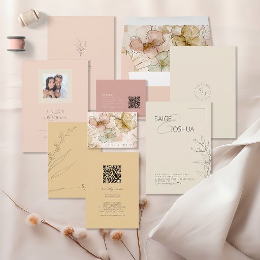 This modern wedding invitation features a warm sun-washed ivory background paired with clean typography and delicate botanical line art. Minimalist composition and generous white space create a calm, airy feel, while soft taupe and charcoal tones add subtle contrast and sophistication. Hand-drawn foliage details bring an organic, nature-inspired touch that feels both contemporary and timeless. The overall design balances modern simplicity with earthy warmth, making it ideal for refined celebrations with a natural, understated aesthetic. Search ID1283 to see other products in this beautiful wedding collection.