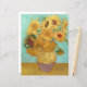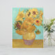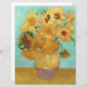 Zonnebloemen (1889) Vincent van Gogh. Stilleven op een blauwe achtergrond. Een helder boeket van zonnebloemen staat in een vaas. De reproductie van bekende kunstwerken in het publieke afbeelding.