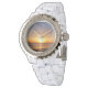 Een mooi fotografisch ontwerp van een zonsondergang boven het zee in Wales.