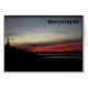 Een late zonsondergang op een koude avond in december. Een engel sculptuur staat links, veel vogels in de lucht. Digitaal verbeterde foto.